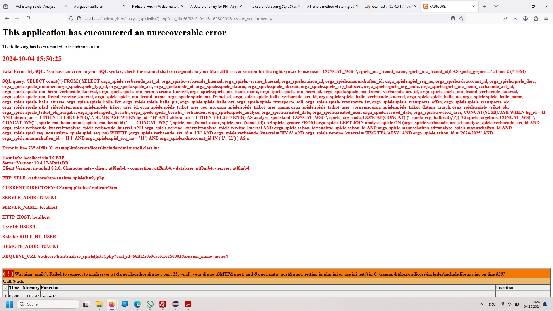 which is why it fails. There is nothing in the RADICORE framework which does this. There must be something in your PHP configuration which does this, such as MAGIC_QUOTES. What version of PHP are tou using? I am currently on 8.3.13